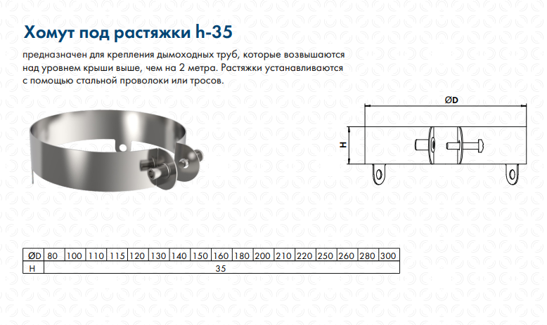 Хомут обжимной для растяжки d 220 нерж AISI 439/1,0мм, h=35мм