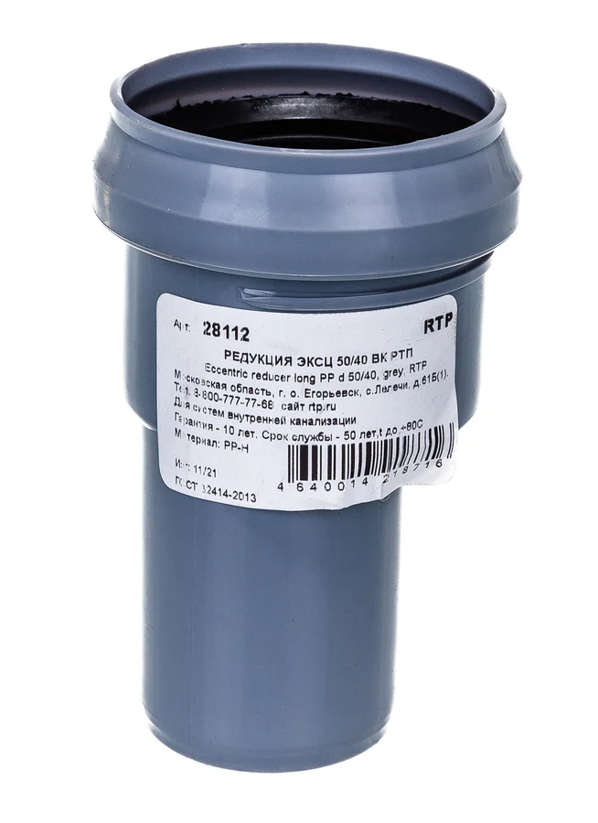 Переход канализ.(эксцентрический длин.) 40/50 СЕРЫЙ