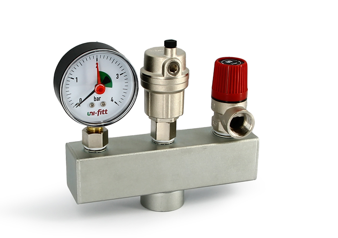 Группа безопасности для котла -ПРОХОДНАЯ 1" 3 бар Никель Uni-Fitt 254N4530