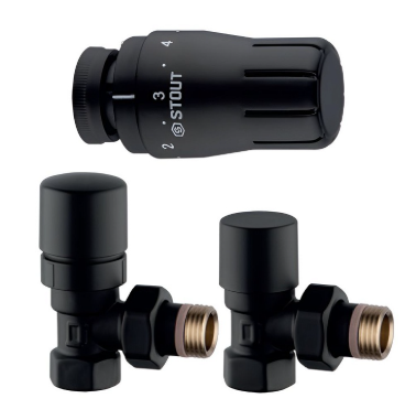 Клапан термостатический угловой КОМПЛЕКТ с термоголовкой 15 STOUT Design черный SVTDK-0002-000015B