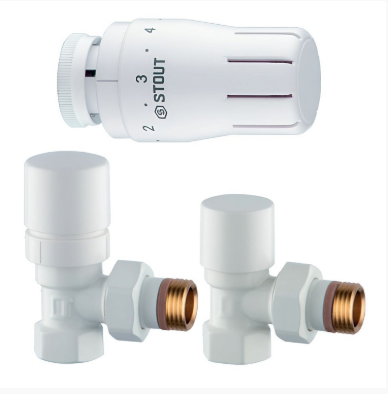 Клапан термостатический угловой КОМПЛЕКТ с термоголовкой 15 STOUT Design белый SVTDK-0002-000015W
